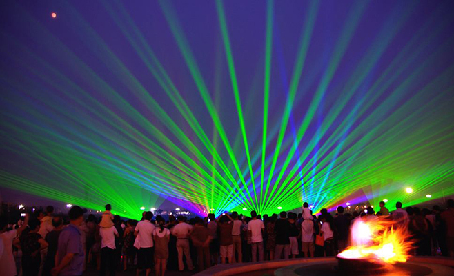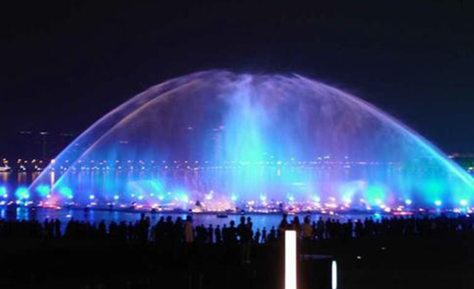在景觀噴泉慢慢融入我們的生活的時候,藝術(shù)與科技的相結(jié)合,孕育出了宏偉壯觀的水幕激光。水幕激光表演系統(tǒng)是將激光器發(fā)出的激光束射在水幕噴頭噴出的水膜上,激光束由激光控制系統(tǒng)編程控制,可發(fā)出多種多樣的圖案及色彩,照射在晶瑩透明的水膜上,形成斑斕奪目的奇異效果.水幕電影最早出現(xiàn)于20世紀80年代,在國際上也僅在法國、日本等幾個國家的大城市擁有。水幕電影采用特殊的入映機播放,使用的影片也是專門為水幕電影特制的影帶。由于電影的屏幕是透明的水膜,因此在電影播放時會有一種特殊的光學(xué)效果,屏幕的視覺穿透性可使畫面有一種立體的感覺,影片的內(nèi)容可與水面巧妙的結(jié)合,更有一種身臨其境般的奇幻感覺。 獨特水幕電影是通過高壓水泵和特制水幕發(fā)生器,將水自上而下,高速噴出,霧化后形成扇形“銀幕”,由專用放映機將特制的錄影帶投射在“銀幕”上,形成水幕電影。當觀眾在觀摩電影時,扇形水幕與自然夜空融為一體,當人物出入畫面時,好似人物騰起飛向天空或自天而降,產(chǎn)生一種虛無縹緲和夢幻的感覺,令人神往。