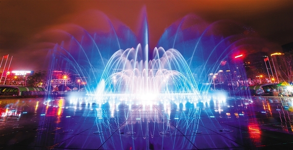 廣場(chǎng)噴泉增加了廣場(chǎng)的亮點(diǎn)和吸引力,為市民們休閑的好去處。各種噴泉種種水態(tài)花樣翻新,層出不窮。夜晚的噴泉更是絢麗多姿,形成了一道獨(dú)特的人文景觀(guān)。